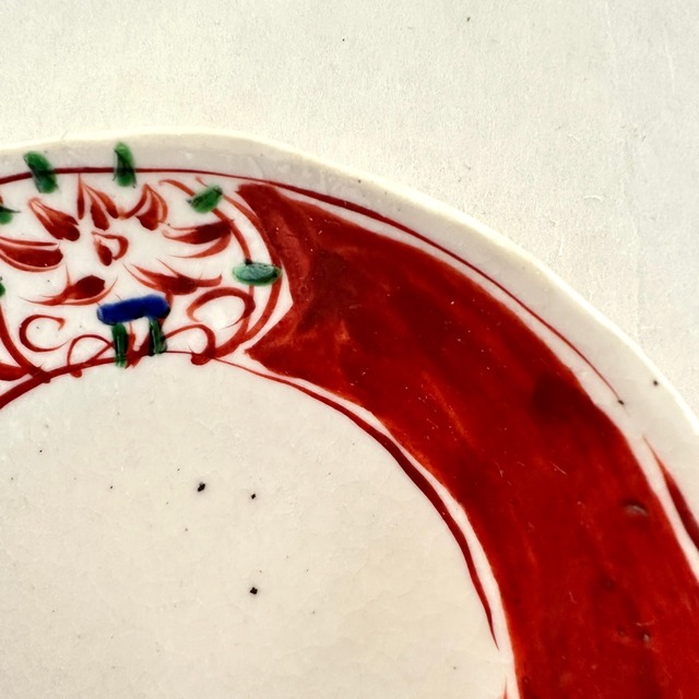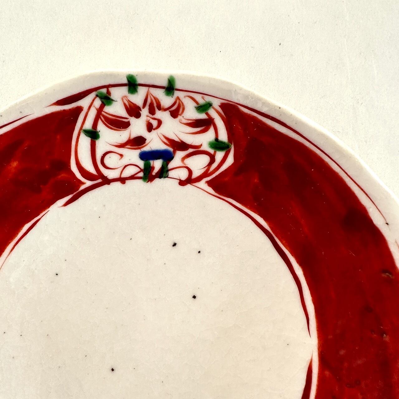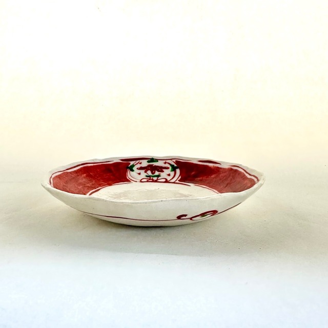 志野赤絵草花文朱巻六寸皿【榛澤宏】
