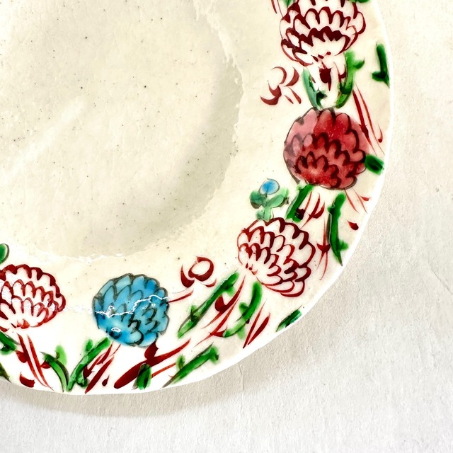 志野赤絵野花六寸ひらひら皿(トルコ、赤釉)【榛澤宏】