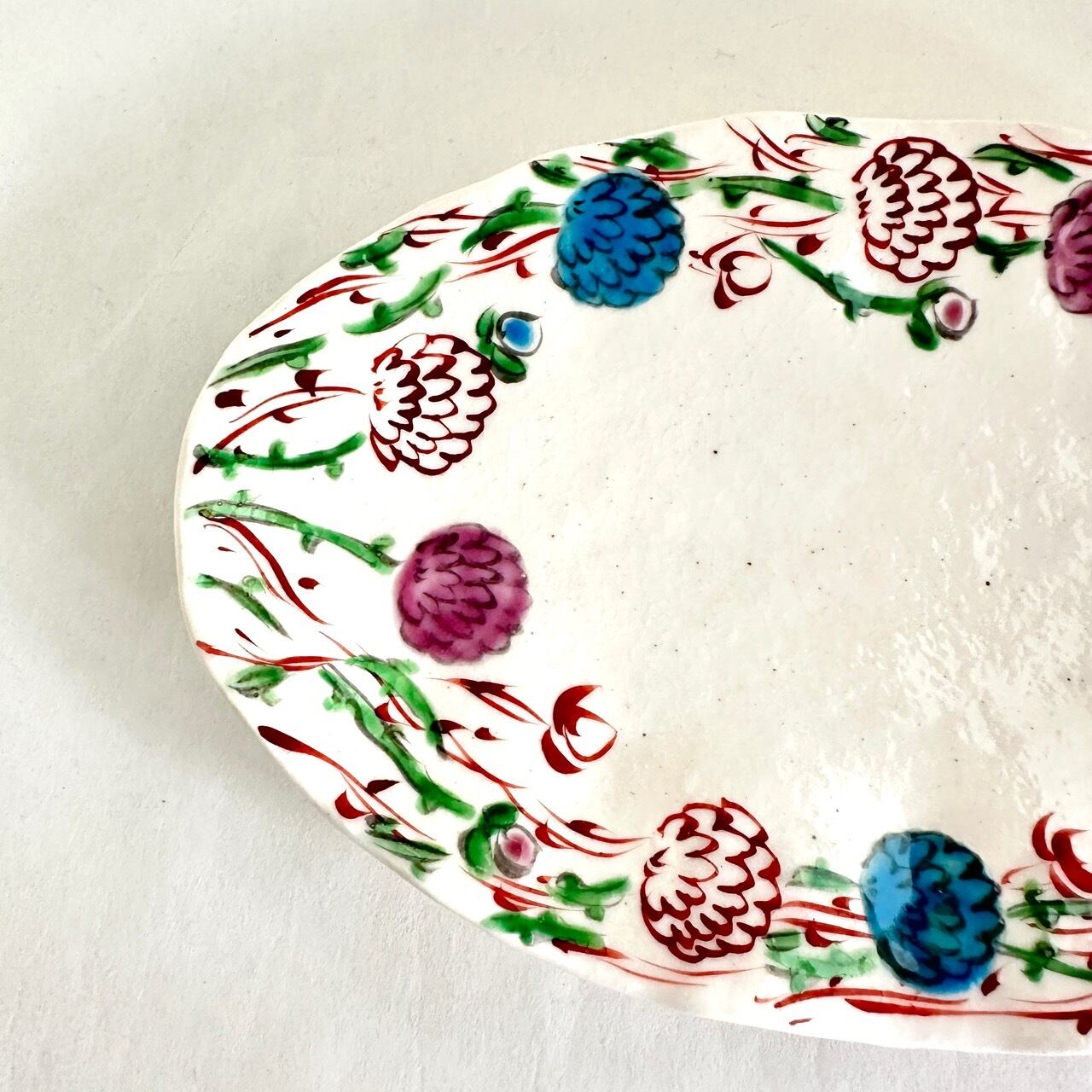 志野赤絵野花楕円中皿(トルコ、マロン)【榛澤宏】
