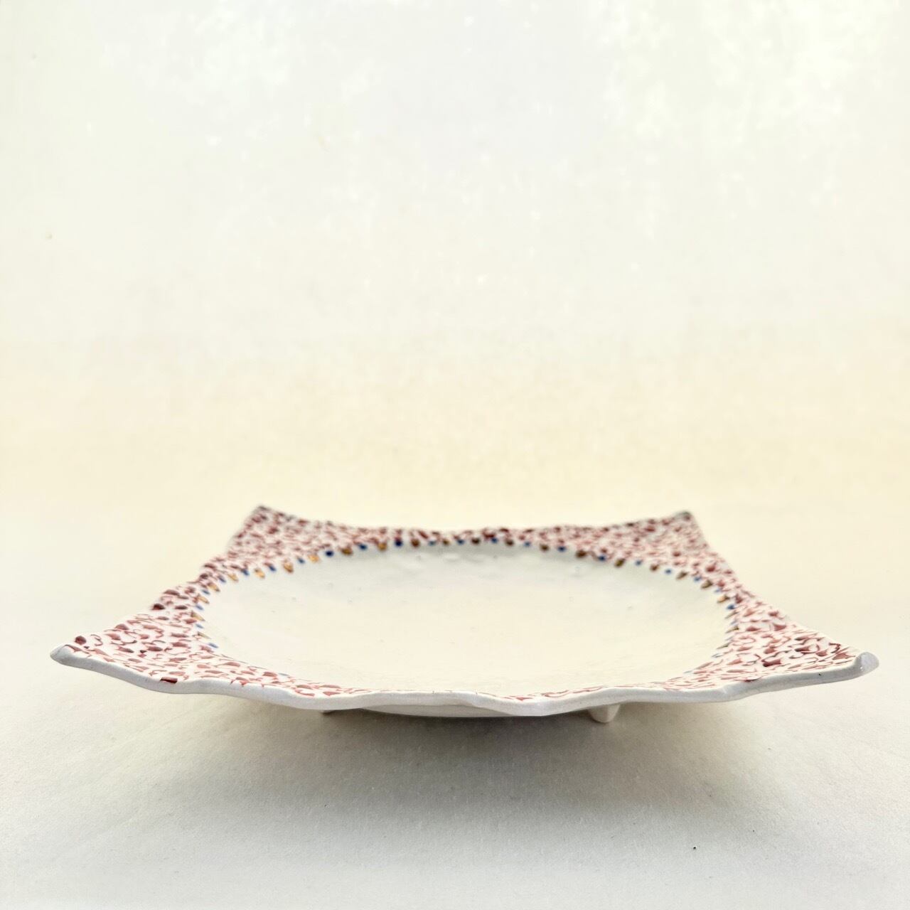 金彩志野赤絵四足四方皿(中)【榛澤宏】