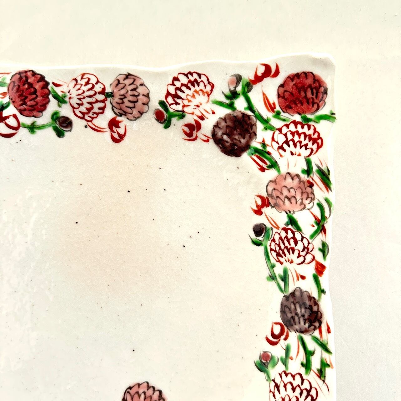 • 志野赤絵野花四足四方皿(大)(ピンク、紫、赤釉)【榛澤宏】