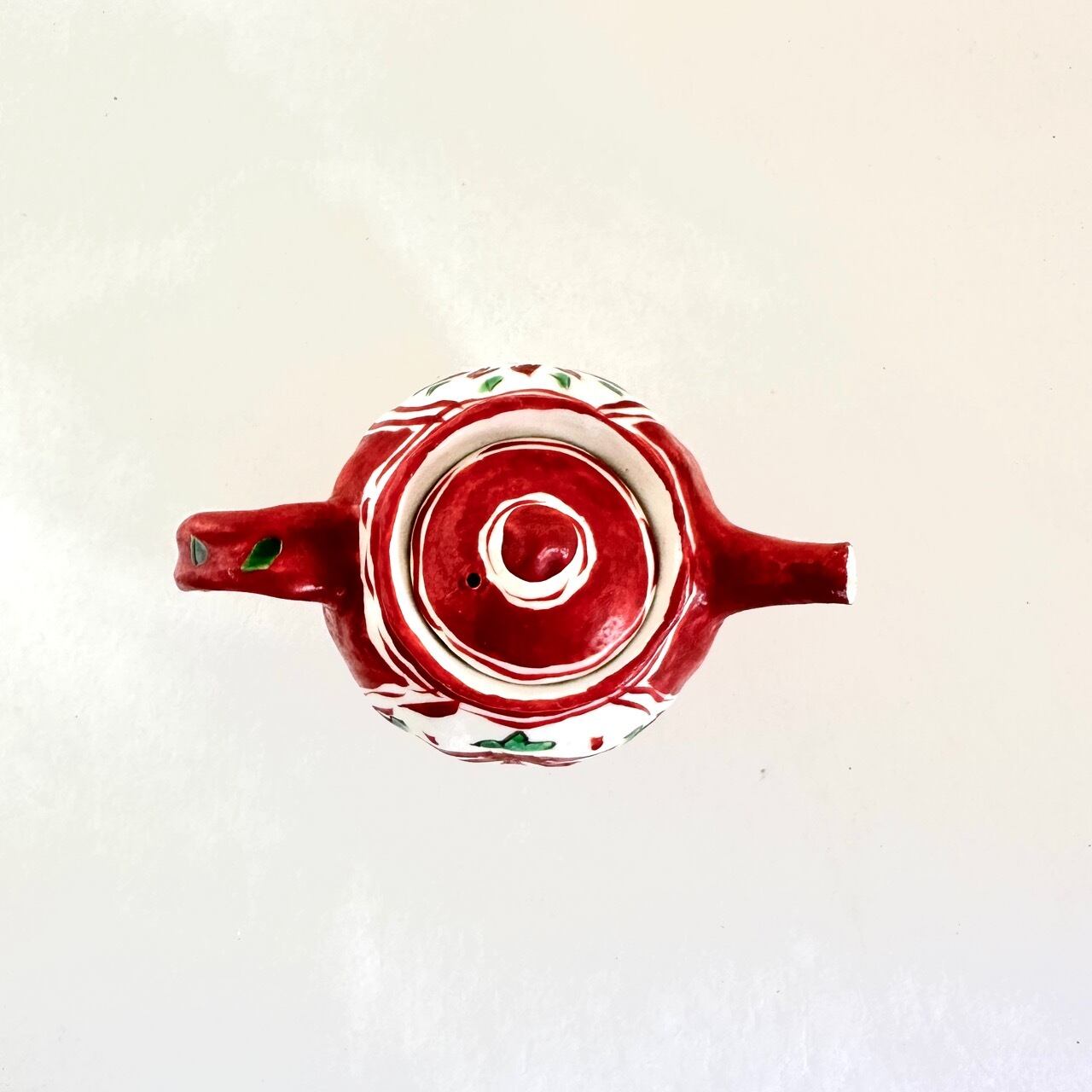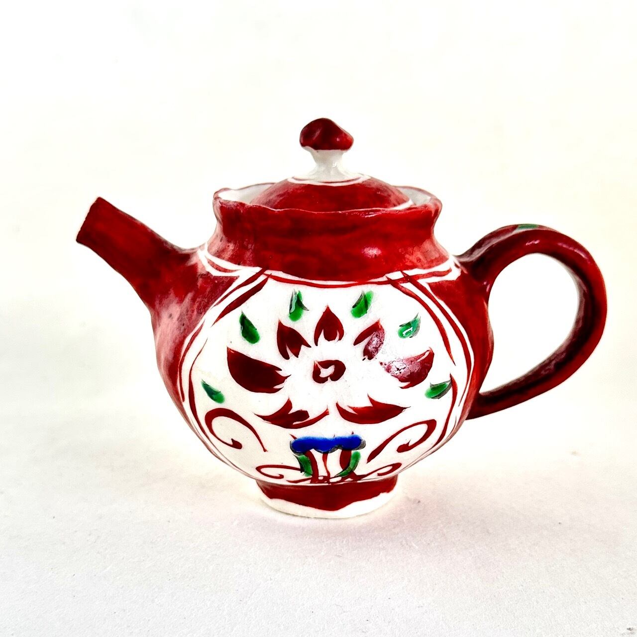 志野赤絵朱巻草花文ポット(中)【榛澤宏】