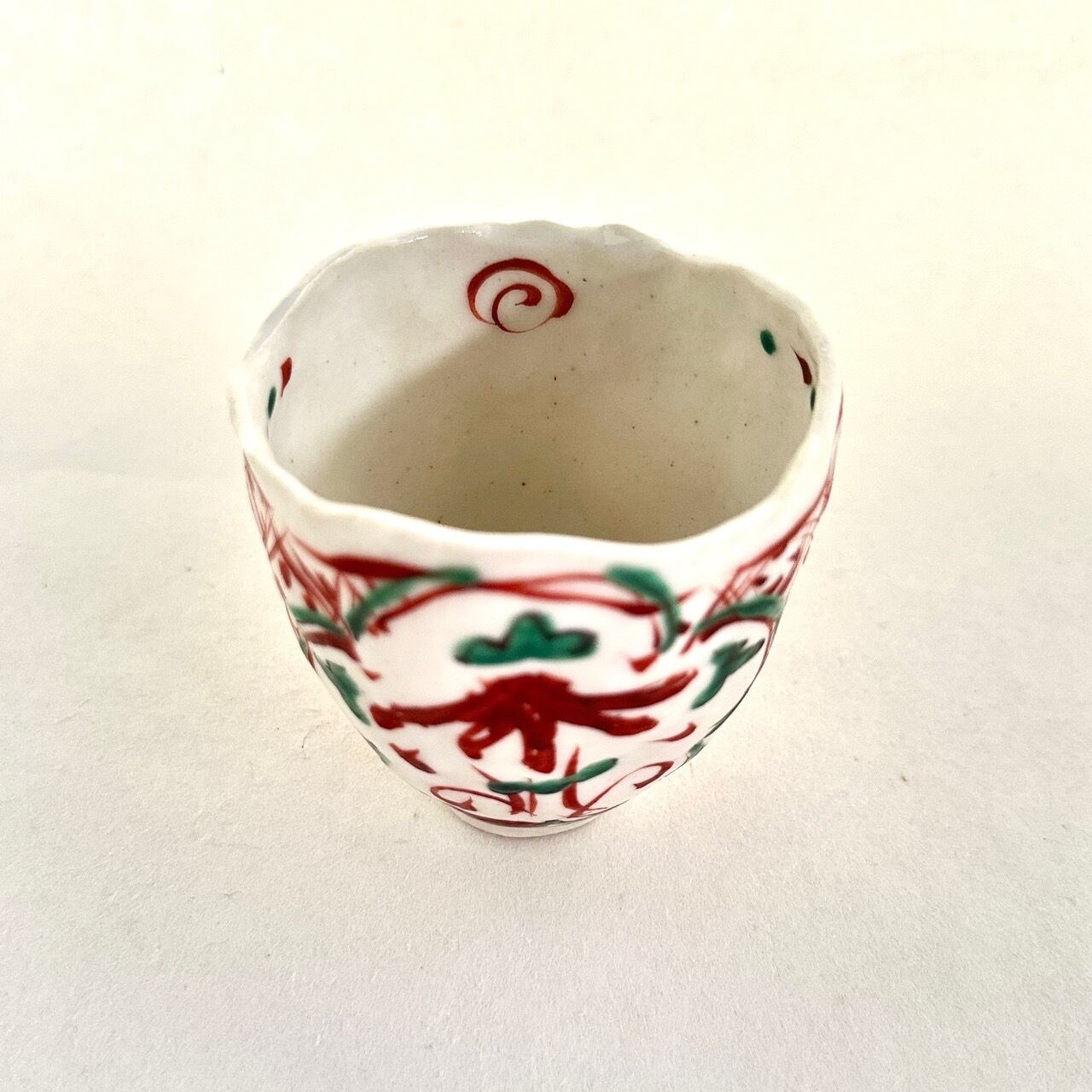 金彩志野赤絵草花文湯呑【榛澤宏】
