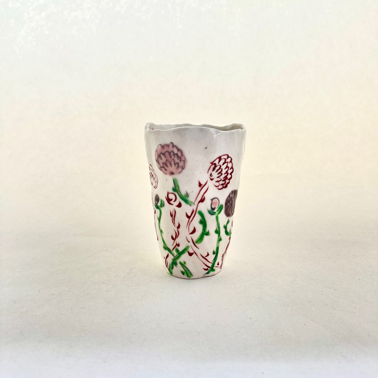 志野赤絵野花長カップ(ピンク、紫)【榛澤宏】