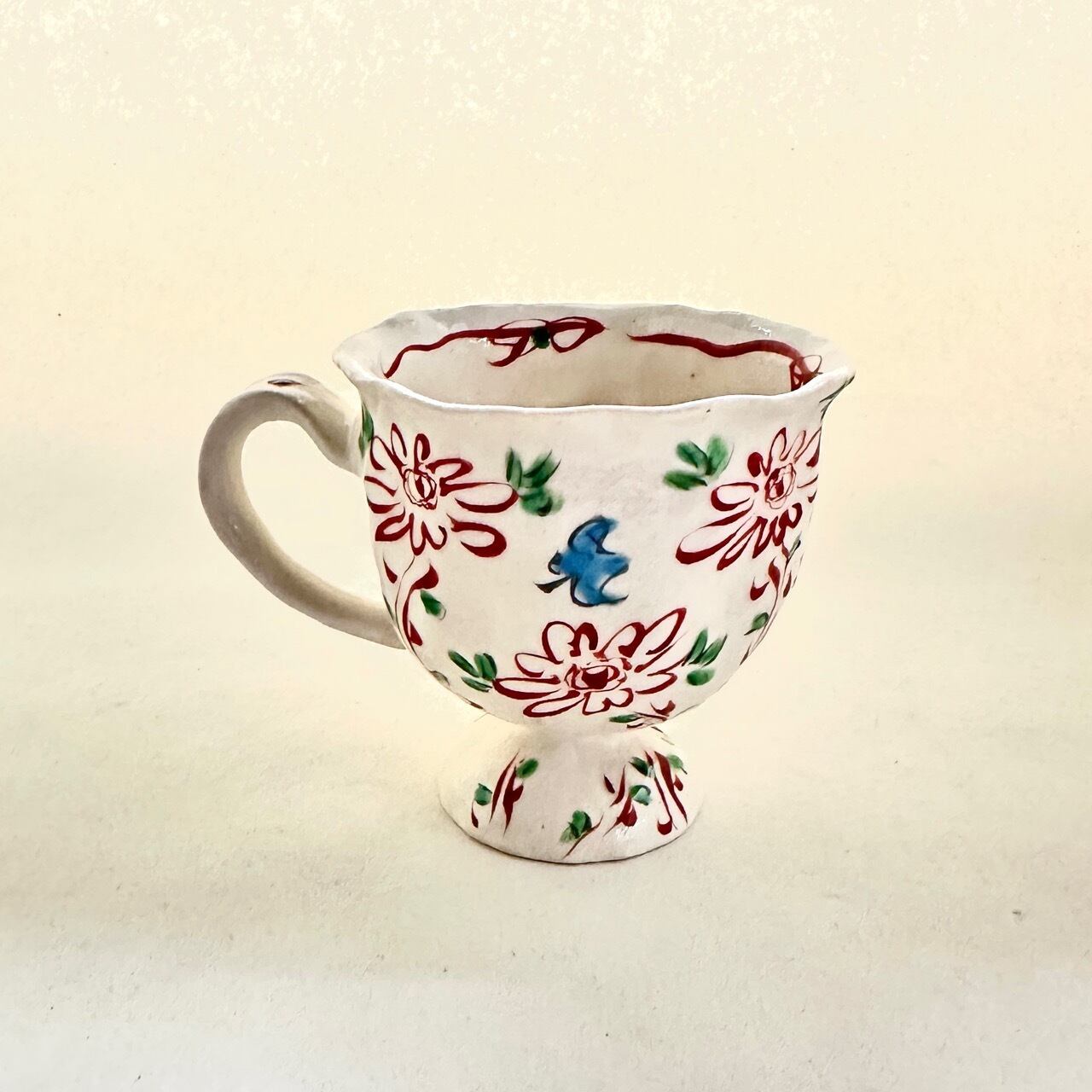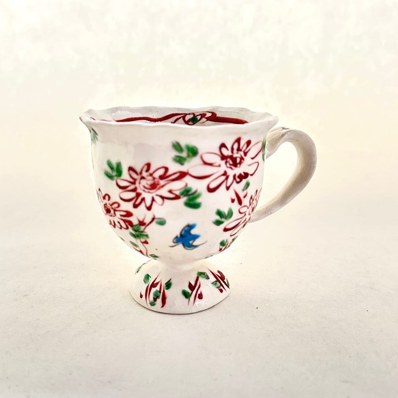 志野赤絵花鳥マグカップ【榛澤宏】