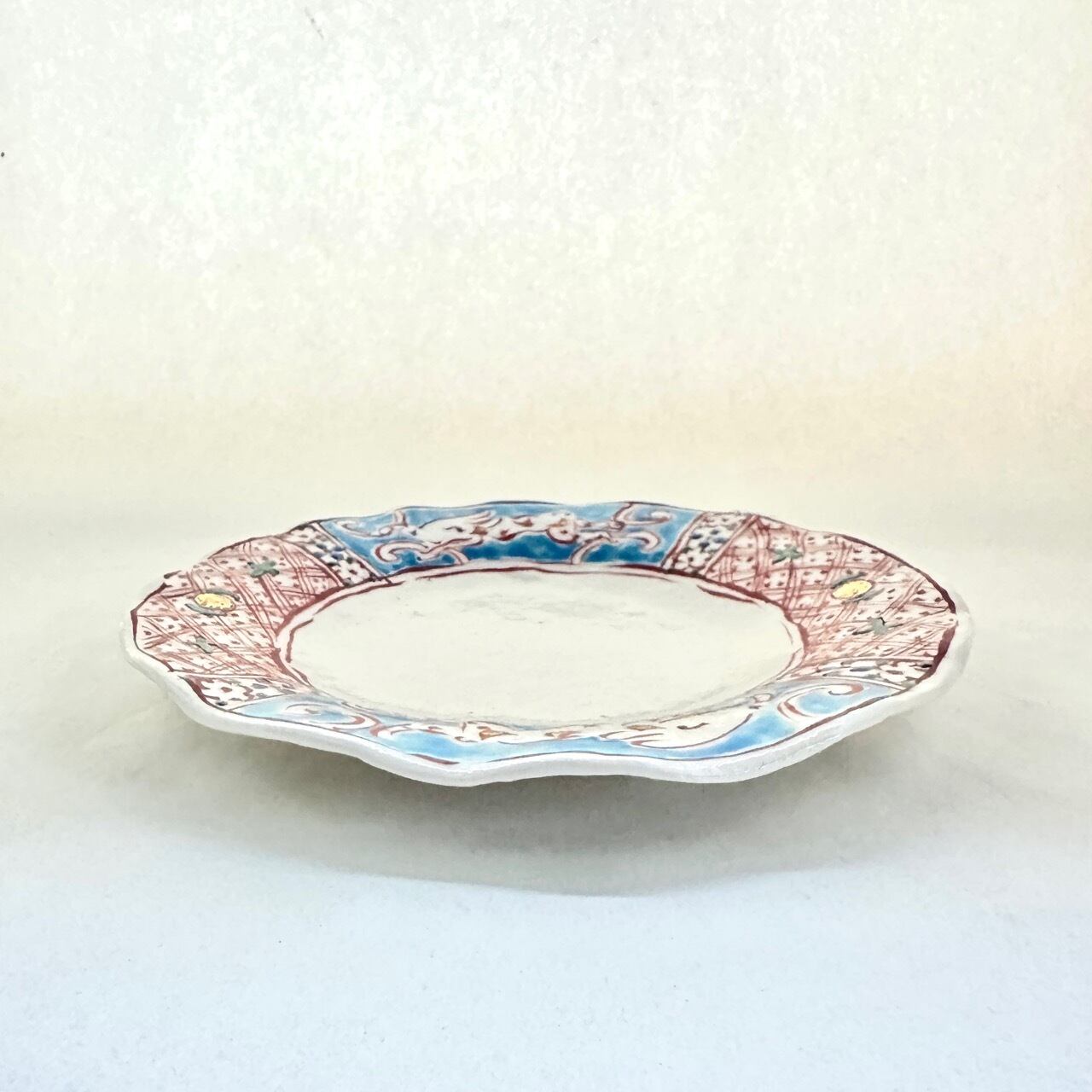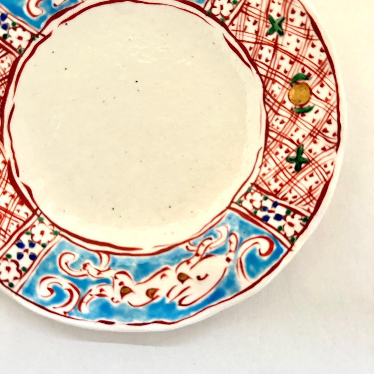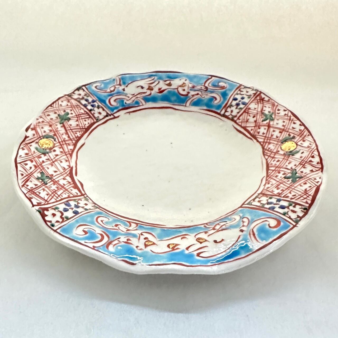 金彩志野赤絵兎文ひらひら八寸皿【榛澤宏】
