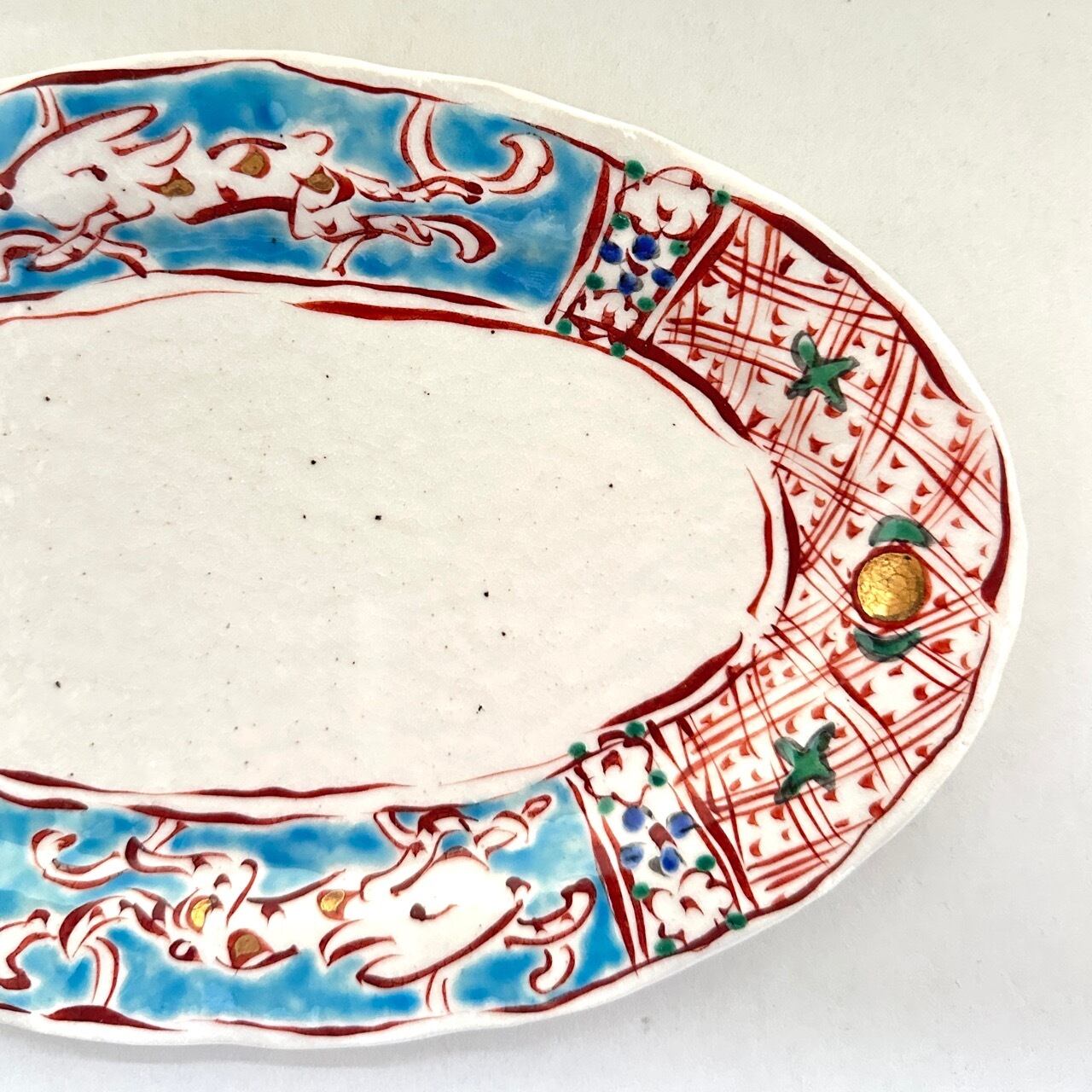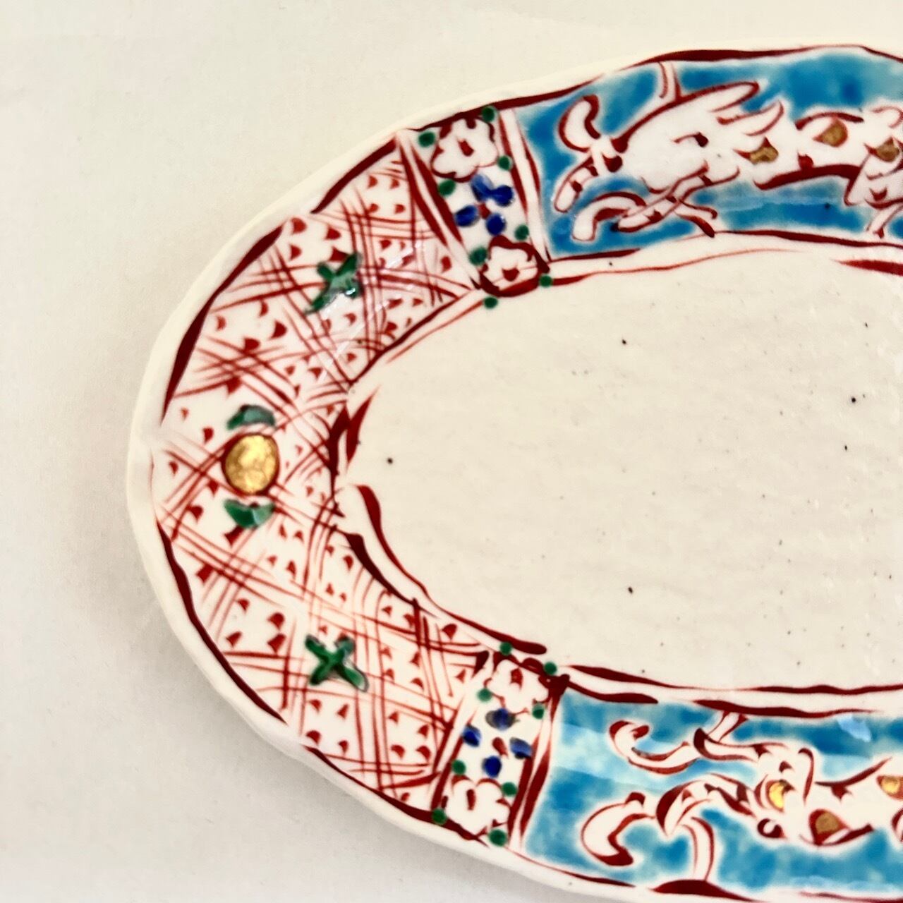 金彩志野赤絵兎文オーバルリム皿(大)【榛澤宏】