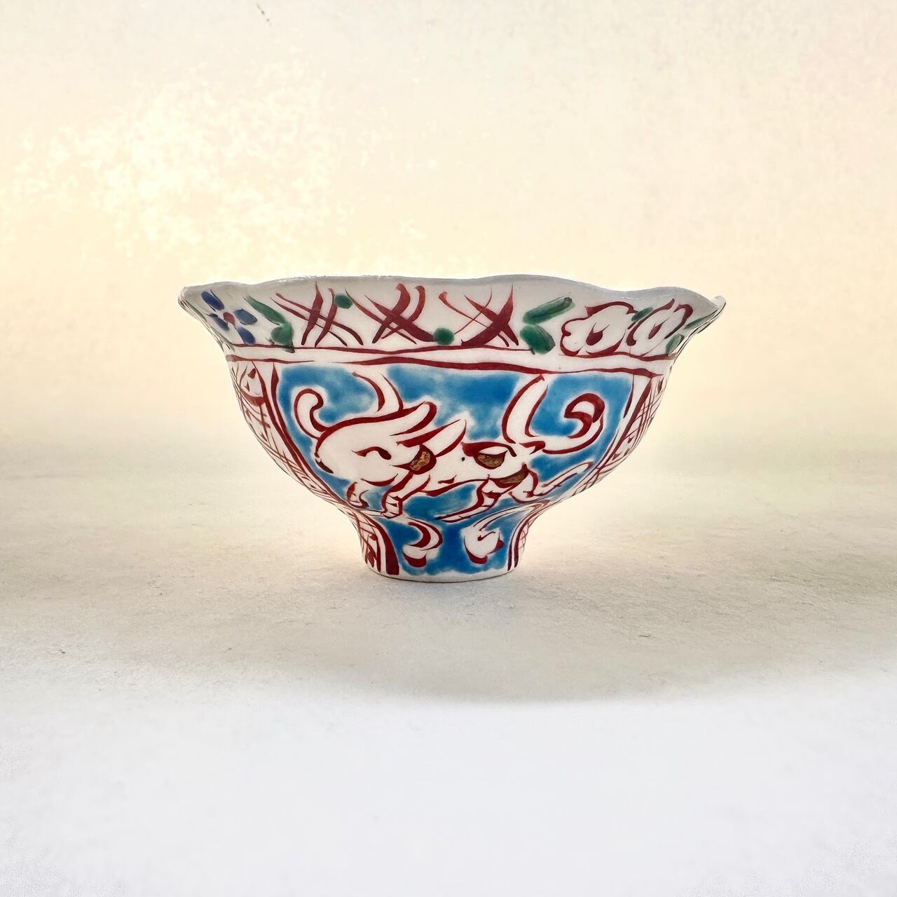 金彩志野赤絵兎文ひらき飯碗(大)【榛澤宏】