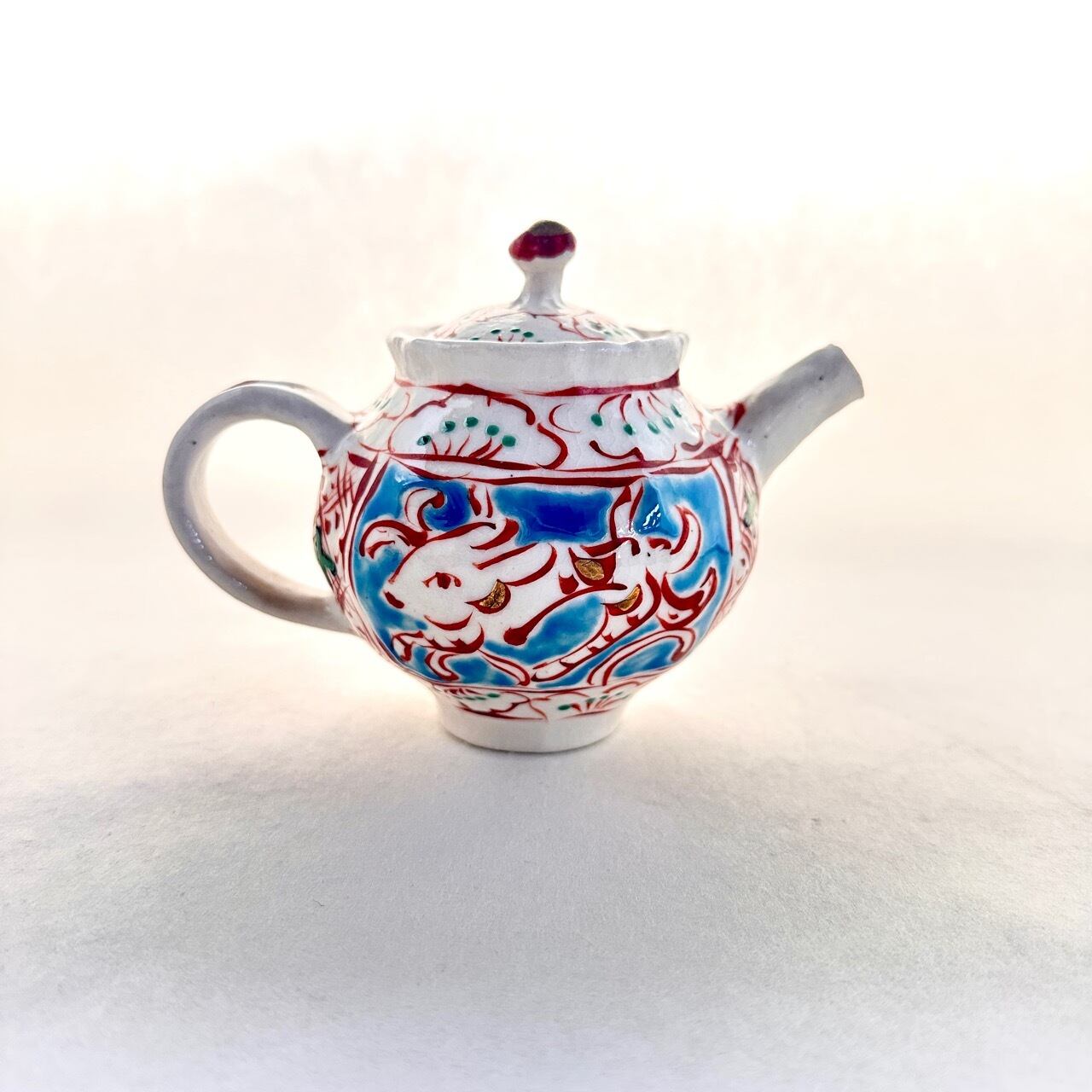 金彩志野赤絵兎文ポット(中)【榛澤宏】
