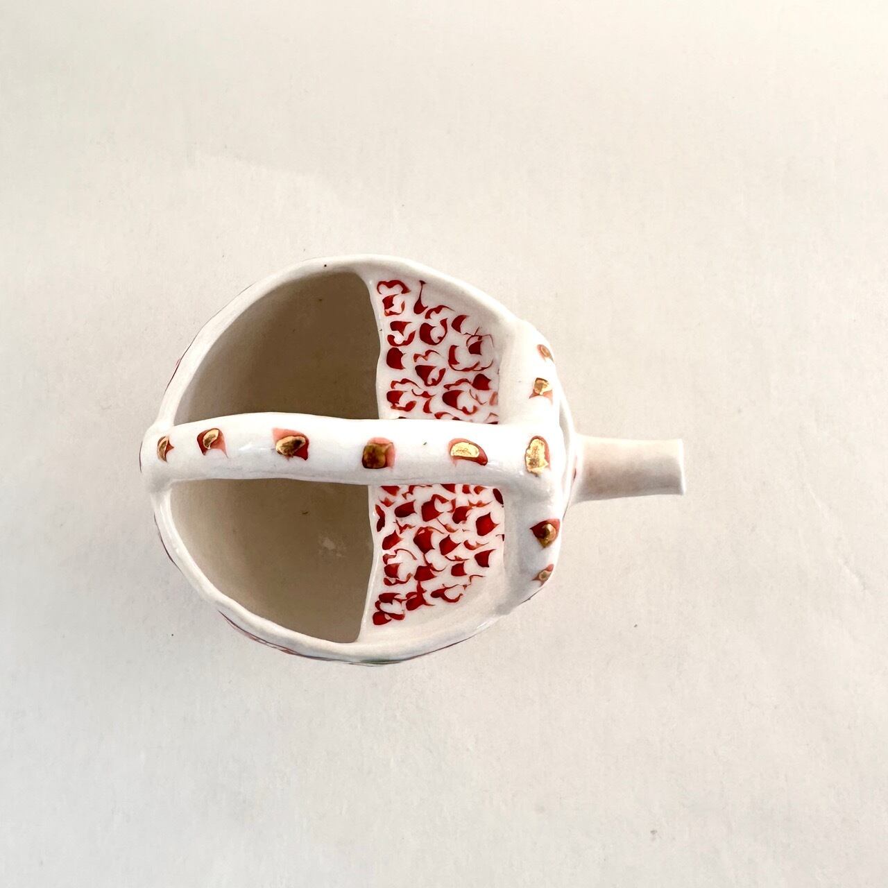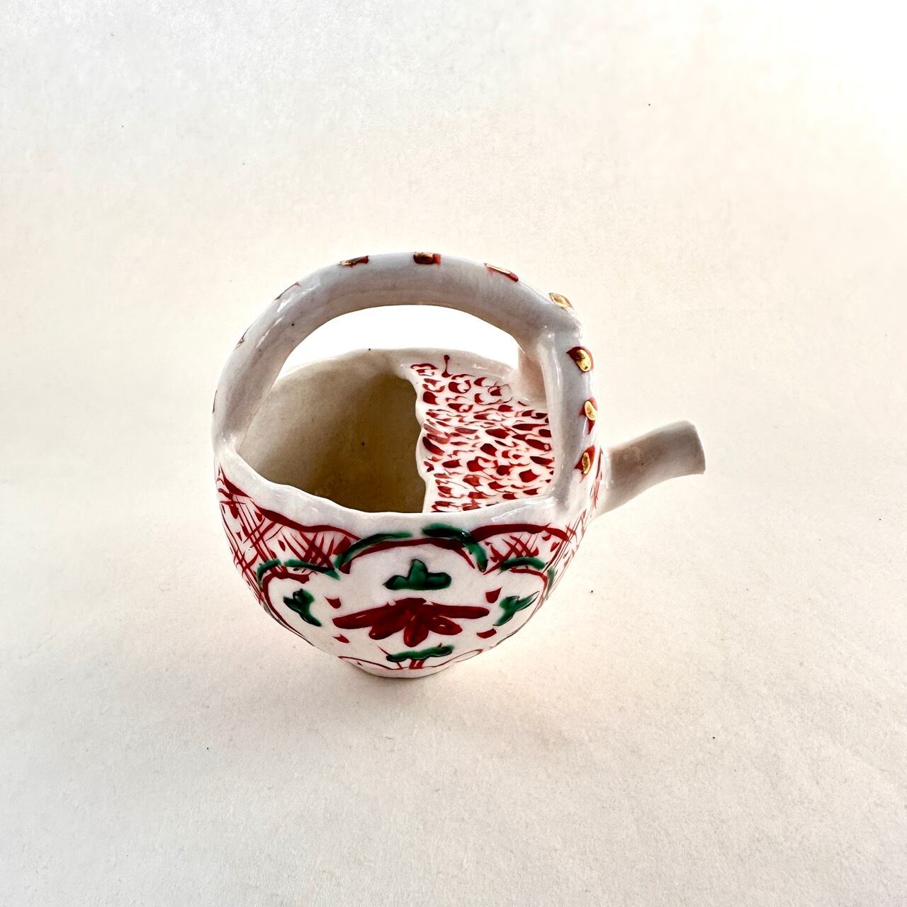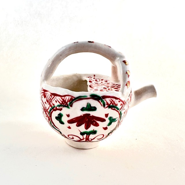 金彩志野赤絵草花文取手注器【榛澤宏】