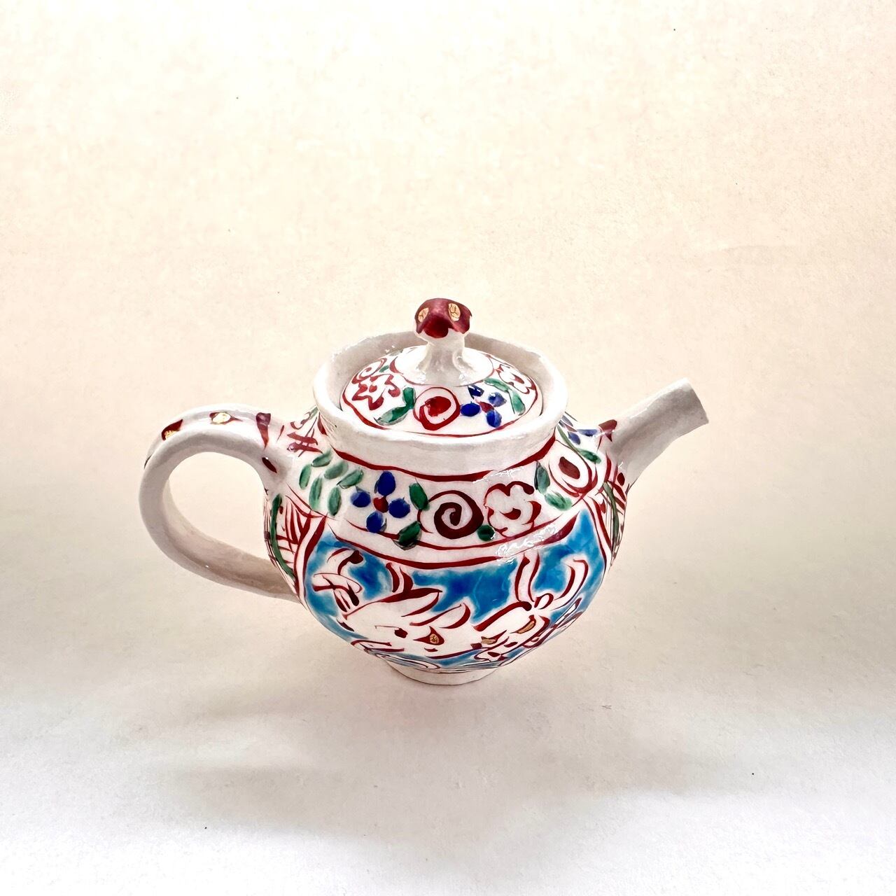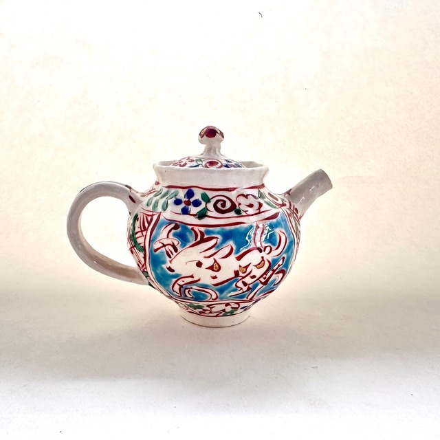 金彩志野赤絵兎文ポット【榛澤宏】