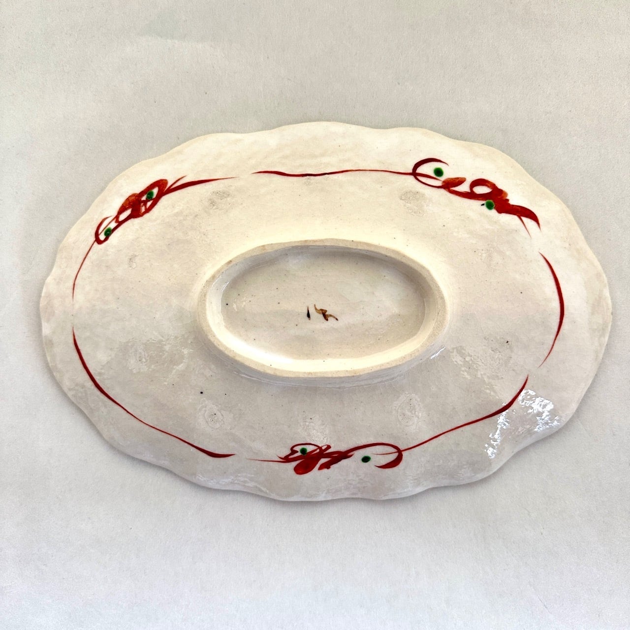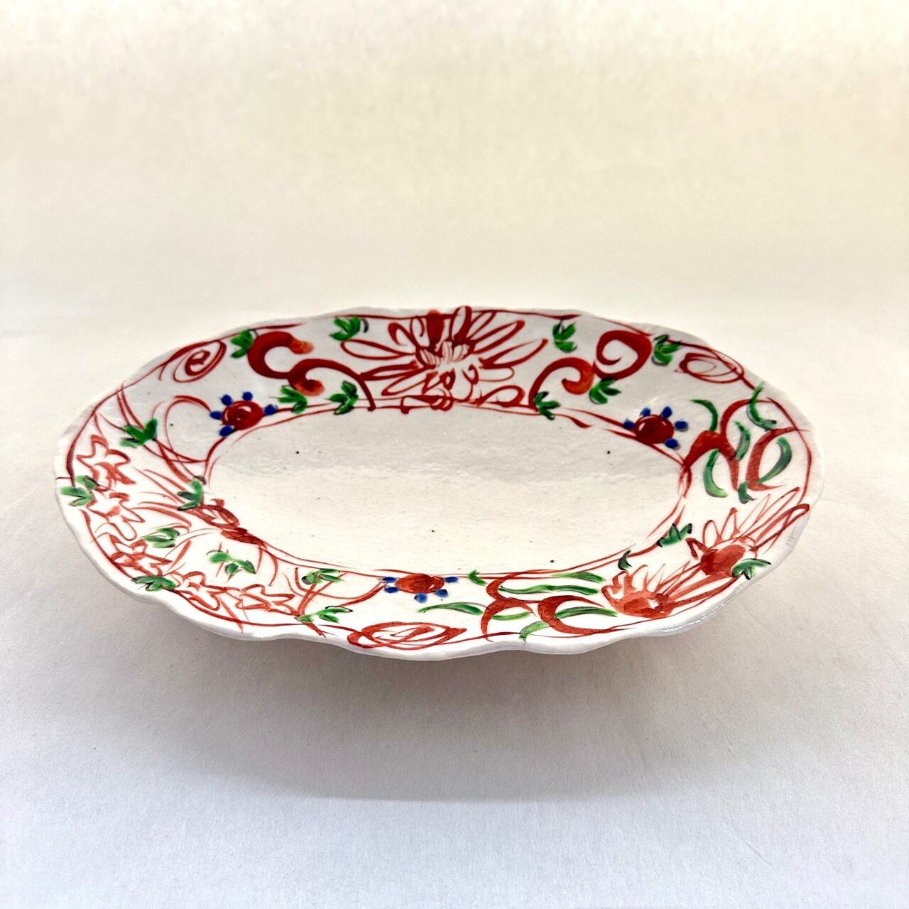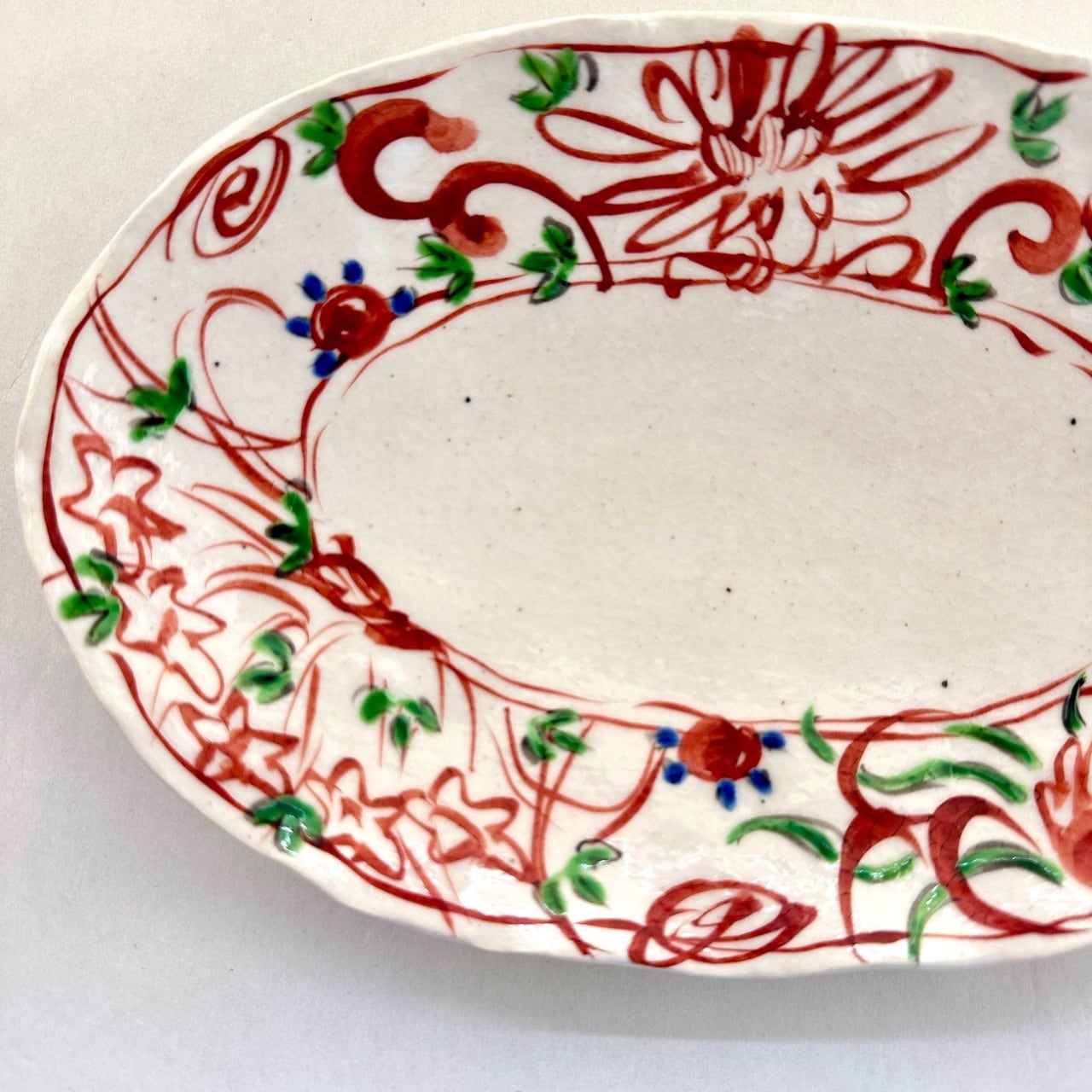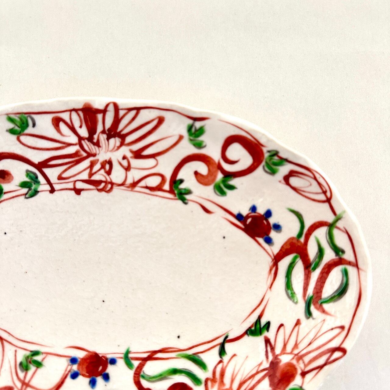 志野赤絵草花文楕円皿(大)【榛澤宏】