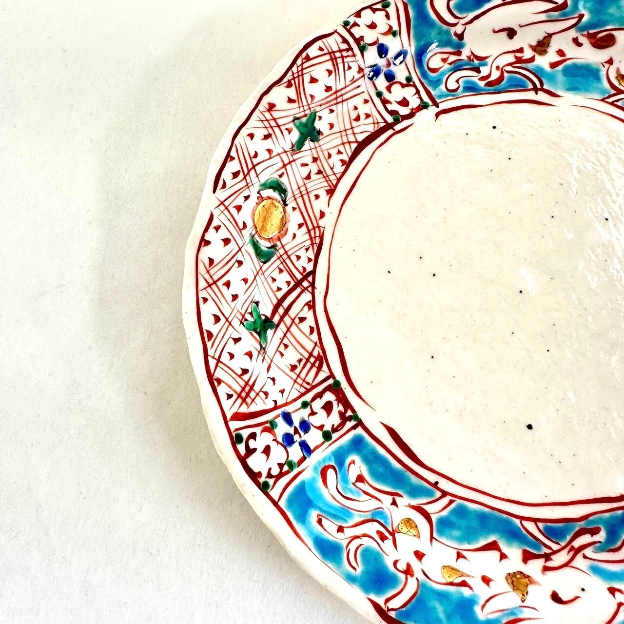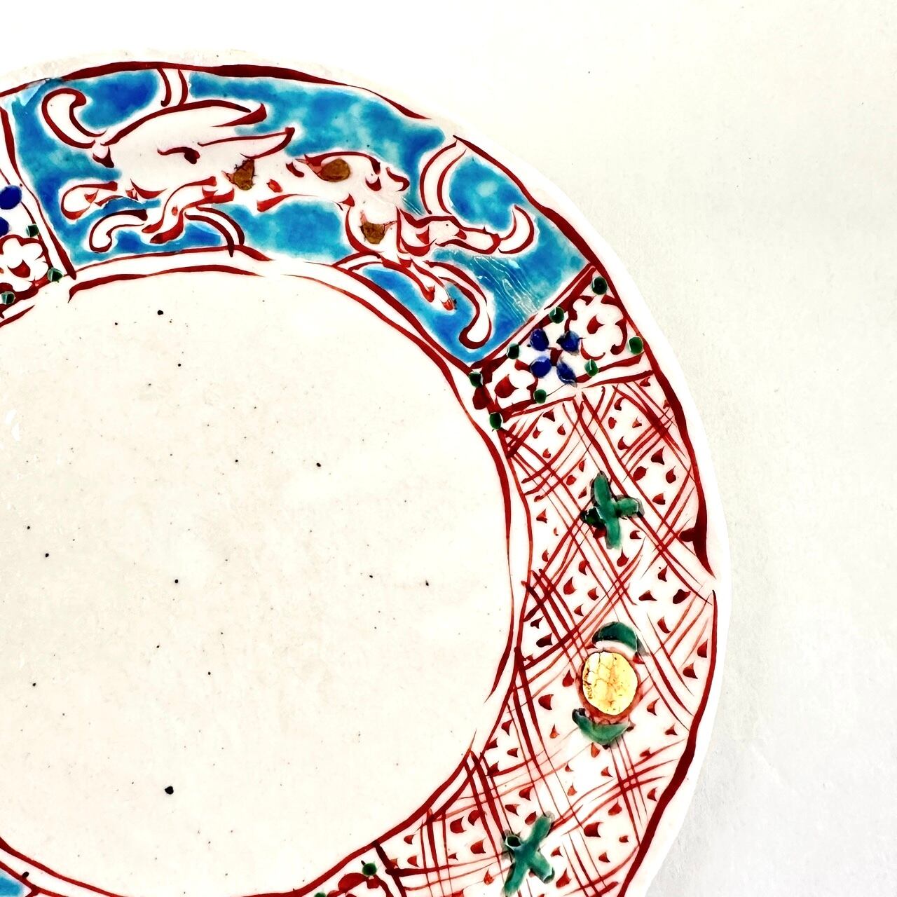 金彩志野赤絵兎文七寸リム皿【榛澤宏】