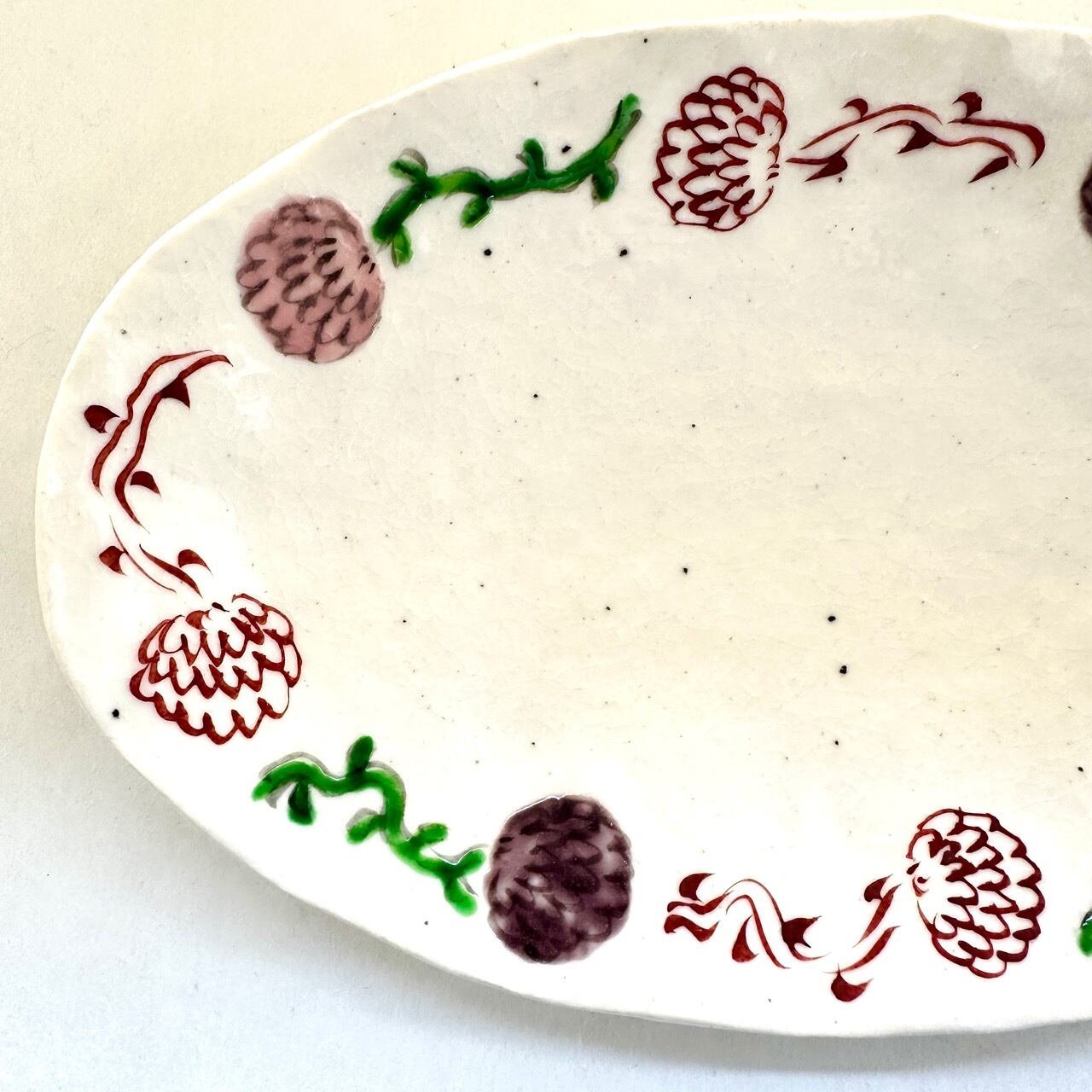志野赤絵立花楕円皿(中)(ピンク、紫)【榛澤宏】