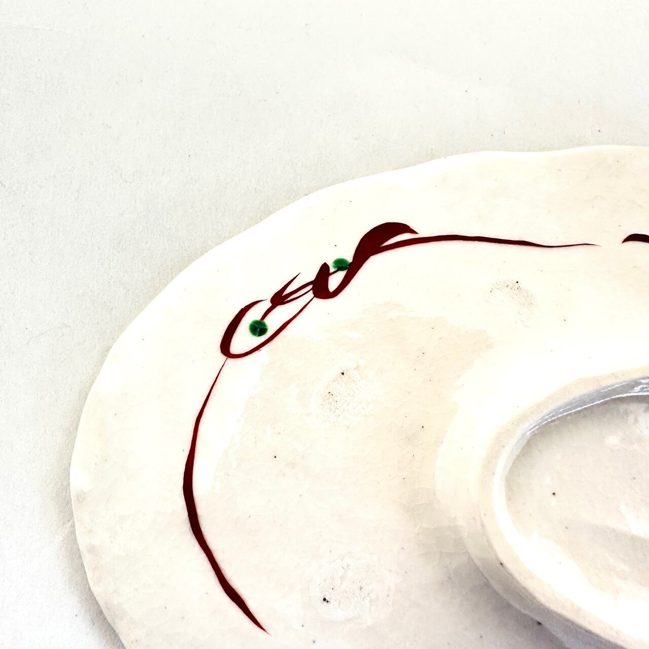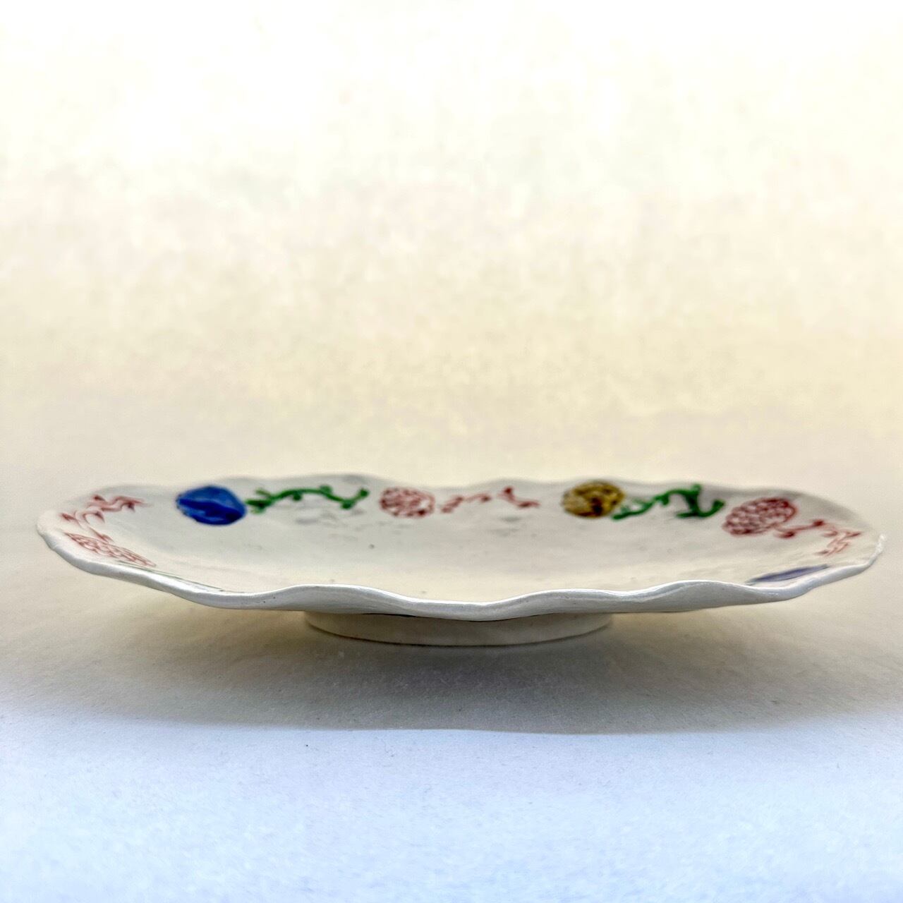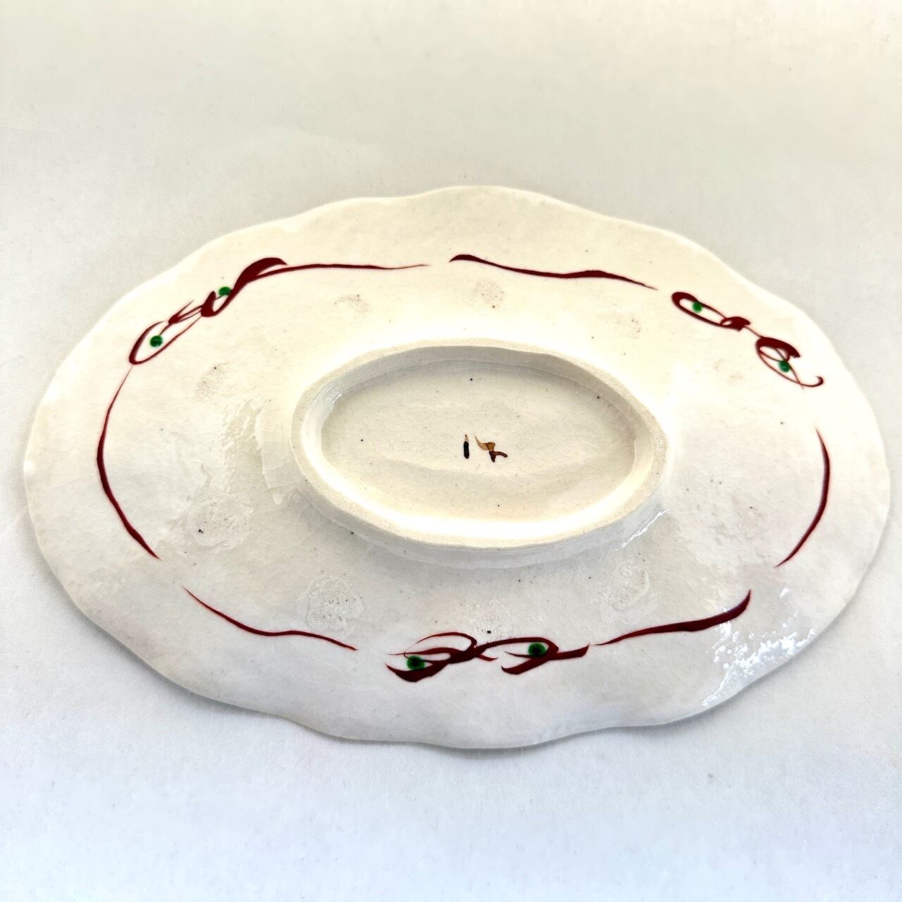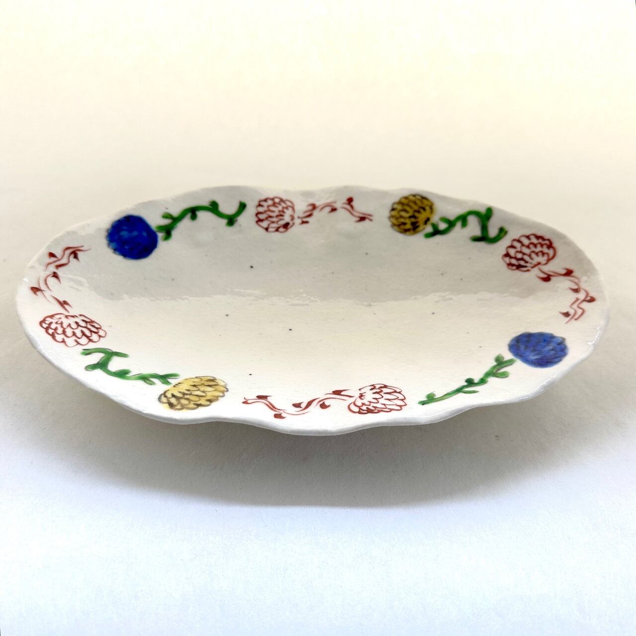 志野赤絵立花楕円皿(中)(青、黄)【榛澤 宏】