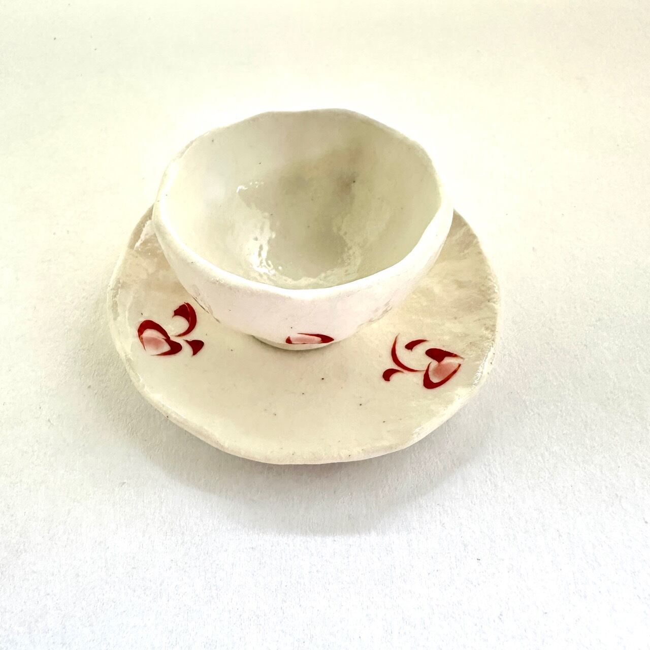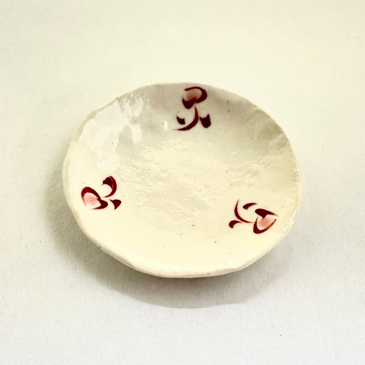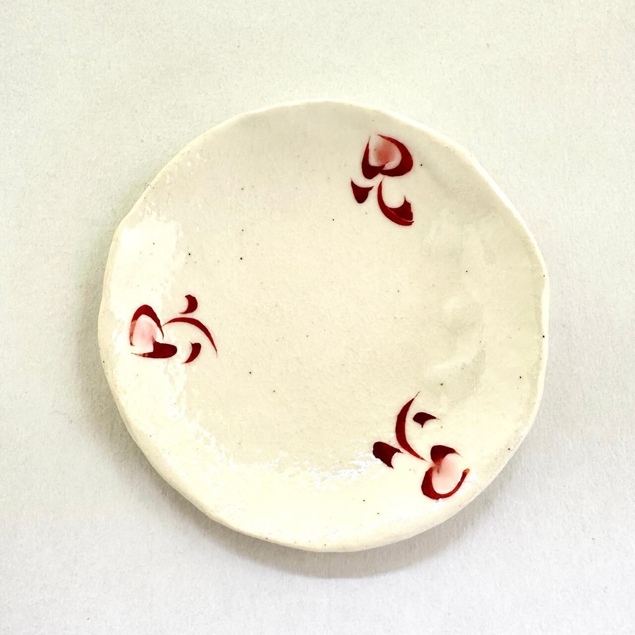 志野赤絵三寸豆皿(点花)【榛澤宏】