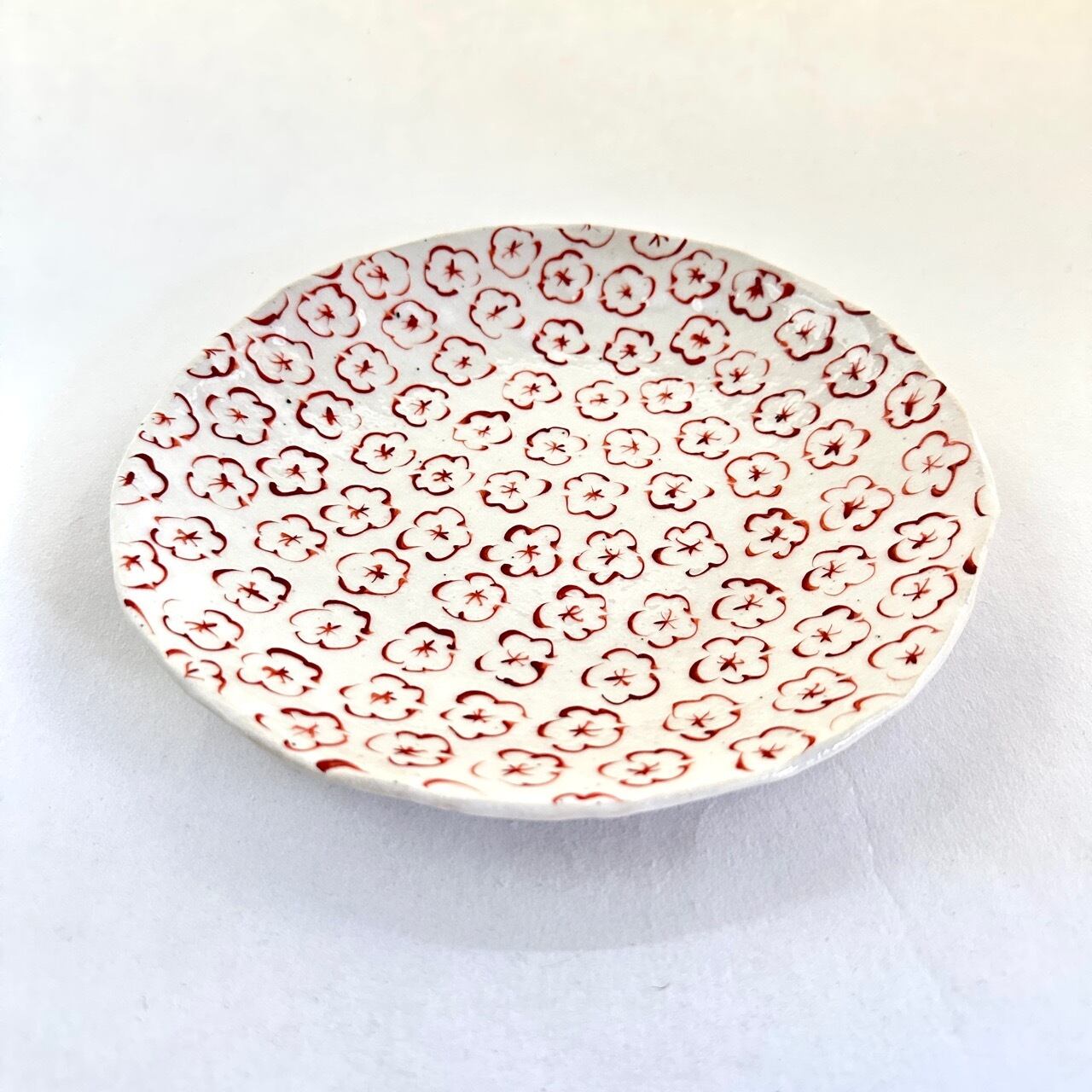 志野赤絵小花文22㎝皿【榛澤宏】